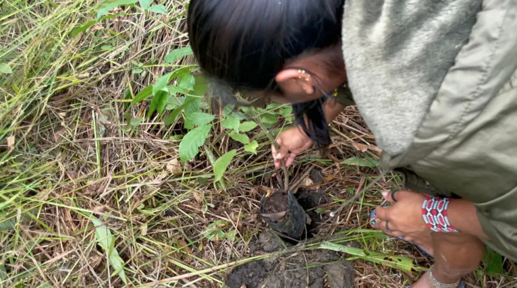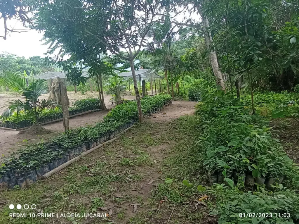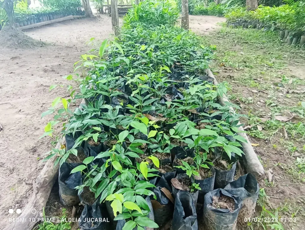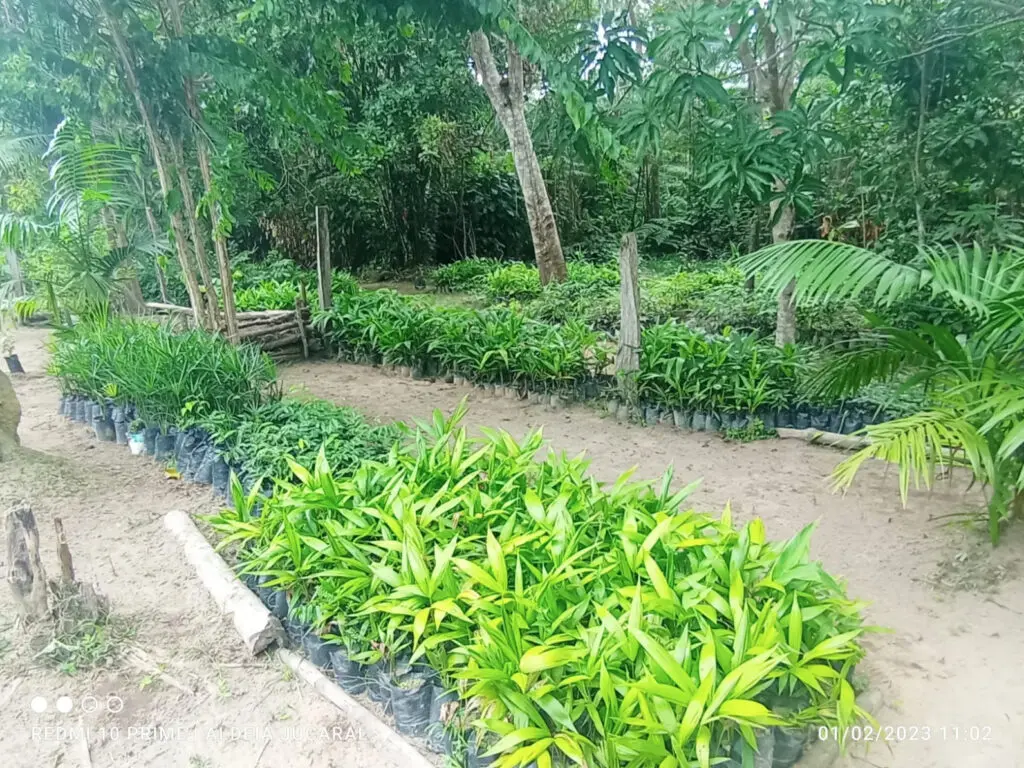 The type of species is decided by the arborist in coordination with the local people and it depends most of all on the soil type and humidity of the soils. For instance close to a river on a rich carbon soil different species will be planted than on a sandy soil that dries out in the dry months. In general a mix of between 10 and 20 types of trees will be planted in the mix. Closer to villages we might add more edible fruit bearing trees and a smaller number of hardwoods that could be used after a few decades for wood. On very degraded soils we will decide for pioneer species who are nitrogen fixing, such as cecropia and inga species. The choice also depends on the kinds of seeds available in the area.